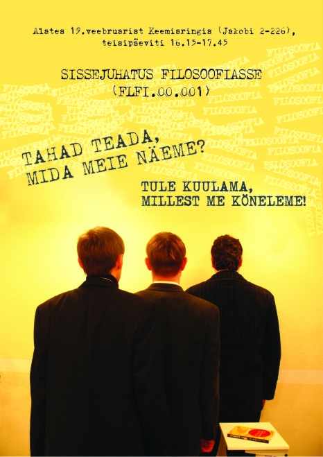 Introduction to Philosophy /Spring 2008/Spring 2009/Spring 2010/Spring 2011/Spring 2012/Spring 2013/Spring 2014/Spring 2015/Spring 2016/Spring 2017 With Dr. Roomet Jakapi and Dr. Marek Volt